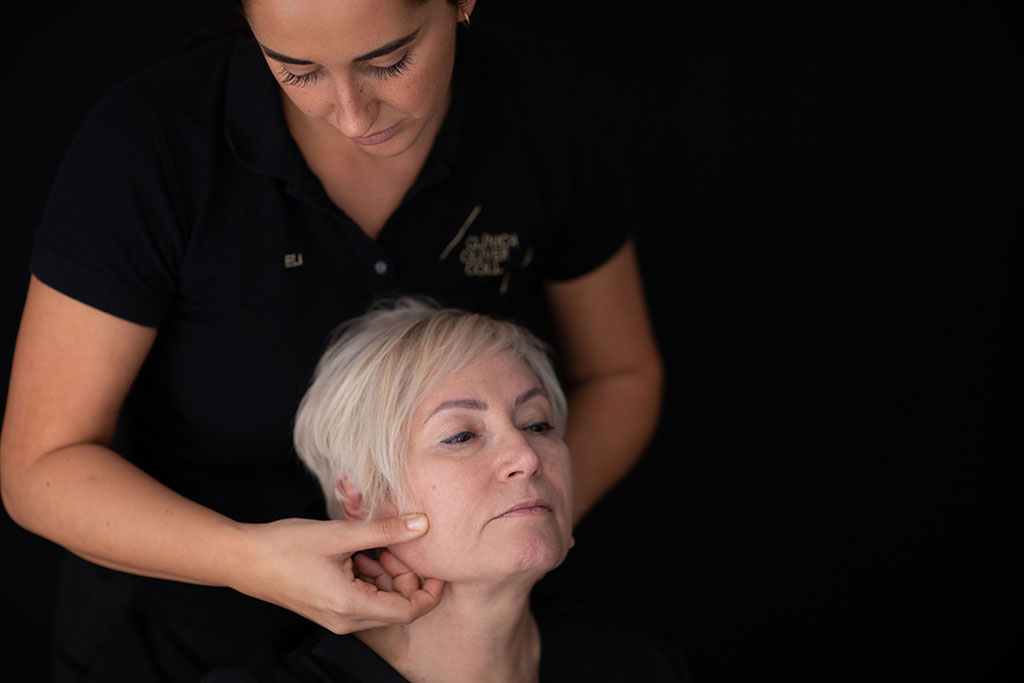 • La relajación pasiva y activa de la musculatura facial, cervical y craneal (especialmente la masticatoria).