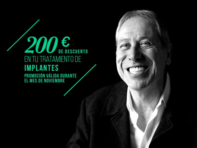 Per això, només durant el mes de novembre, oferim un descompte especial de 200€ en el tractament complet d’implants dentals per a facilitar l’accés a aquells pacients que el necessitin.